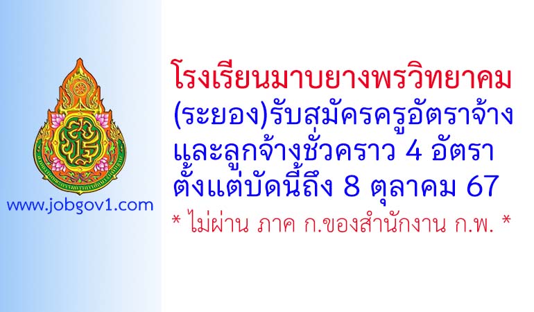 โรงเรียนมาบยางพรวิทยาคม รับสมัครครูอัตราจ้าง และลูกจ้างชั่วคราว 4 อัตรา ตั้งแต่บัดนี้ถึง 8 ตุลาคม 2567