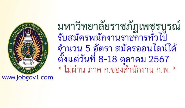 มหาวิทยาลัยราชภัฏเพชรบูรณ์ รับสมัครบุคคลเพื่อเลือกสรรเป็นพนักงานราชการทั่วไป 5 อัตรา ตั้งแต่วันที่ 8-18 ตุลาคม 2567