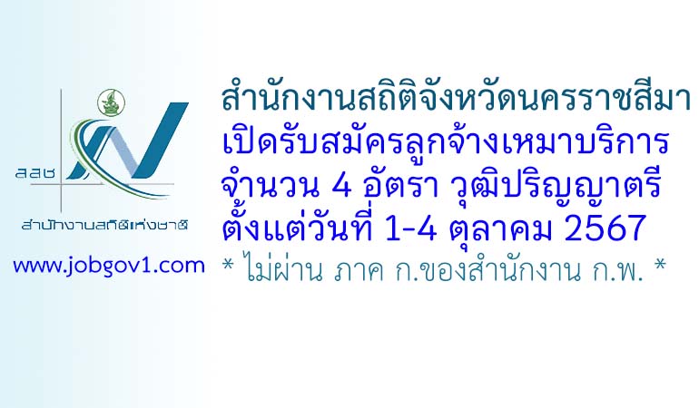 สำนักงานสถิติจังหวัดนครราชสีมา รับสมัครลูกจ้างเหมาบริการ 4 อัตรา ตั้งแต่วันที่ 1-4 ตุลาคม 2567