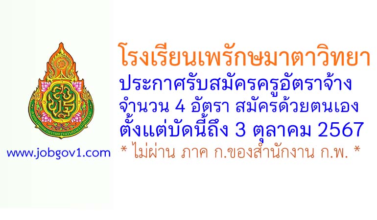 โรงเรียนเพรักษมาตาวิทยา รับสมัครครูอัตราจ้าง จำนวน 4 อัตรา ตั้งแต่บัดนี้ถึง 3 ตุลาคม 2567