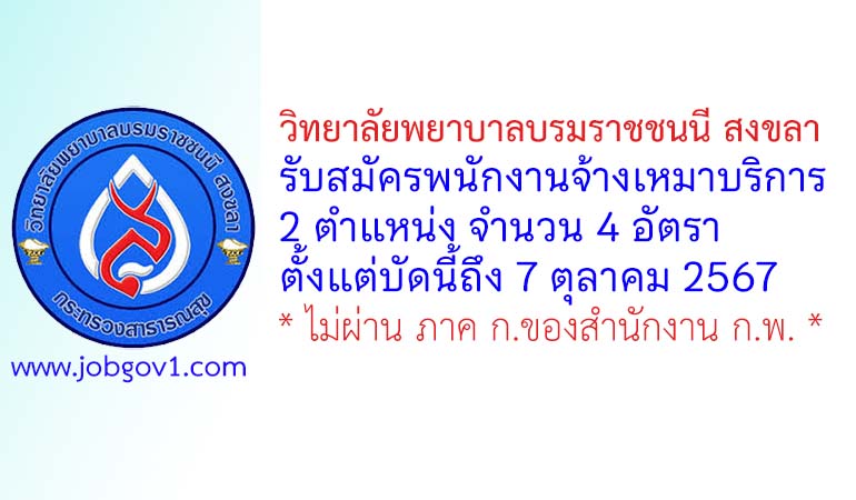 วิทยาลัยพยาบาลบรมราชชนนี สงขลา รับสมัครพนักงานจ้างเหมาบริการ 4 อัตรา ตั้งแต่บัดนี้ถึง 7 ตุลาคม 2567