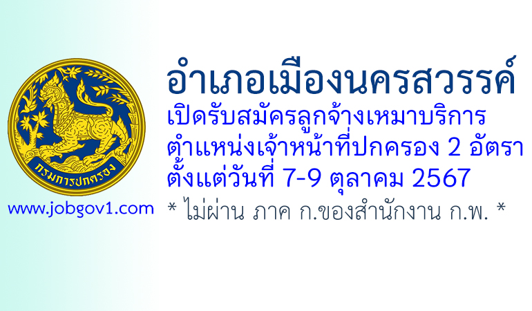 อำเภอเมืองนครสวรรค์ รับสมัครลูกจ้างเหมาบริการ ตำแหน่งเจ้าหน้าที่ปกครอง 2 อัตรา ตั้งแต่วันที่ 7-9 ตุลาคม 2567