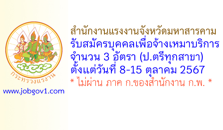 สำนักงานแรงงานจังหวัดมหาสารคาม รับสมัครบุคคลเพื่อเลือกสรรบุคคลเป็นบัณฑิตแรงงาน 3 อัตรา ตั้งแต่วันที่ 8-15 ตุลาคม 2567