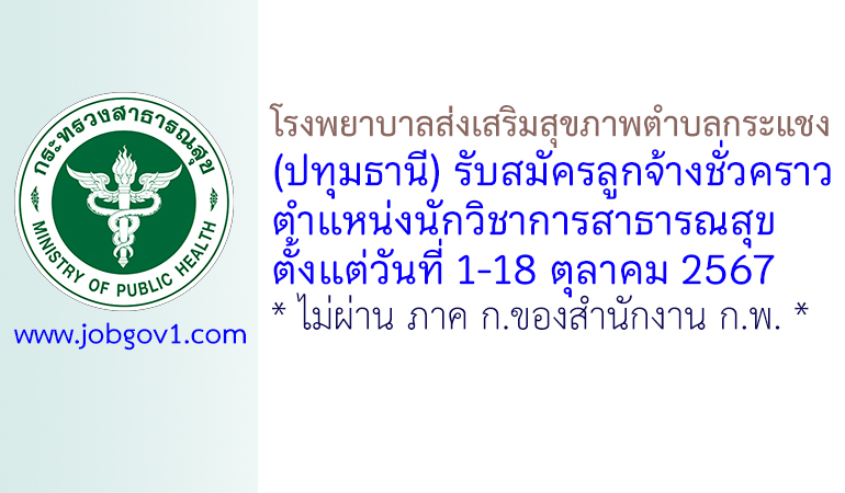 โรงพยาบาลส่งเสริมสุขภาพตำบลกระแชง รับสมัครลูกจ้างชั่วคราว ตำแหน่งนักวิชาการสาธารณสุข ตั้งแต่วันที่ 1-18 ตุลาคม 2567