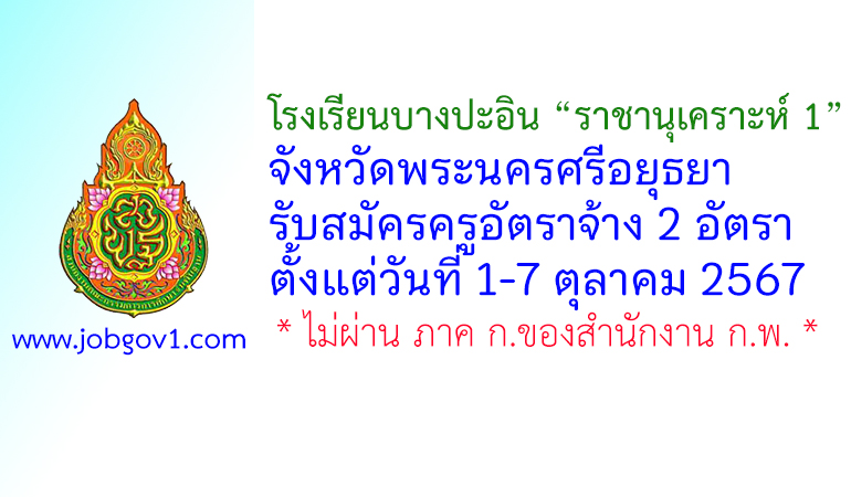 โรงเรียนบางปะอิน “ราชานุเคราะห์ 1” รับสมัครครูอัตราจ้าง 2 อัตรา ตั้งแต่วันที่ 1-7 ตุลาคม 2567