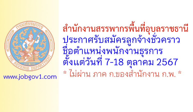 สำนักงานสรรพากรพื้นที่อุบลราชธานี รับสมัครลูกจ้างชั่วคราว ตำแหน่งพนักงานธุรการ ตั้งแต่วันที่ 7-18 ตุลาคม 2567