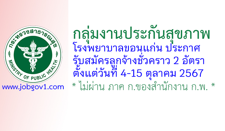 กลุ่มงานประกันสุขภาพ โรงพยาบาลขอนแก่น รับสมัครลูกจ้างชั่วคราว 2 อัตรา ตั้งแต่วันที่ 4-15 ตุลาคม 2567