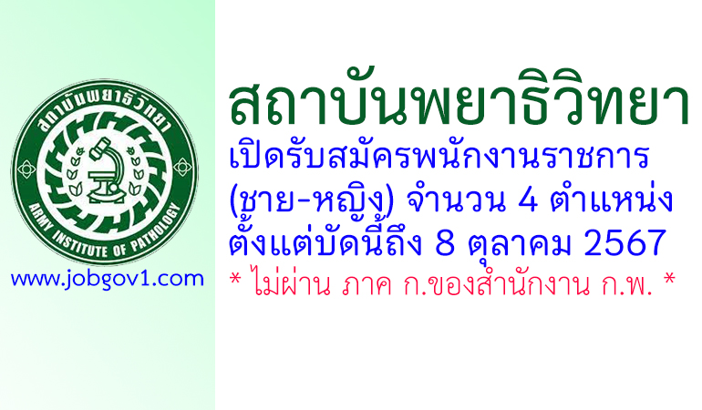 สถาบันพยาธิวิทยา รับสมัครพนักงานราชการ (ชาย-หญิง) 4 ตำแหน่ง ตั้งแต่บัดนี้ถึง 8 ตุลาคม 2567