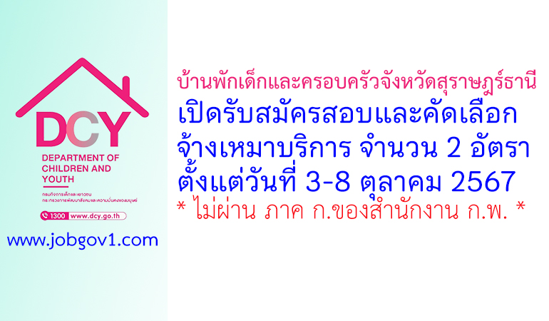 บ้านพักเด็กและครอบครัวจังหวัดสุราษฎร์ธานี รับสมัครสอบและคัดเลือกจ้างเหมาบริการ 2 อัตรา ตั้งแต่วันที่ 3-8 ตุลาคม 2567