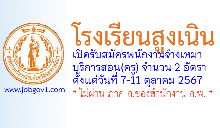 โรงเรียนสูงเนิน รับสมัครพนักงานจ้างเหมาบริการสอน(ครู) จำนวน 2 อัตรา ตั้งแต่วันที่ 7-11 ตุลาคม 2567
