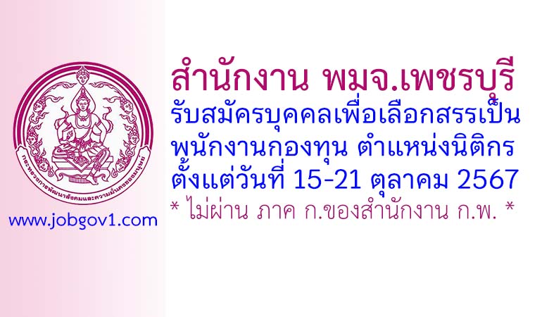 สำนักงาน พมจ.เพชรบุรี รับสมัครบุคคลเพื่อเลือกสรรเป็นพนักงานกองทุน ตำแหน่งนิติกร ตั้งแต่วันที่ 15-21 ตุลาคม 2567