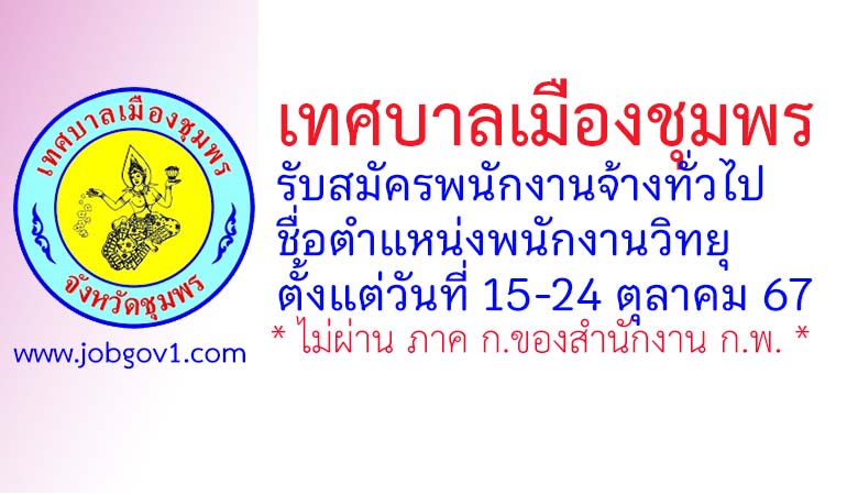 เทศบาลเมืองชุมพร รับสมัครพนักงานจ้างทั่วไป ตำแหน่งพนักงานวิทยุ ตั้งแต่วันที่ 15-24 ตุลาคม 2567