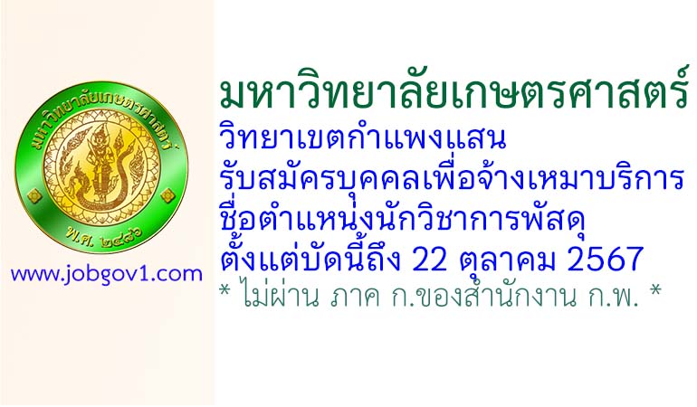 มหาวิทยาลัยเกษตรศาสตร์ วิทยาเขตกำแพงแสน รับสมัครบุคคลเพื่อจ้างเหมาบริการ ตำแหน่งนักวิชาการพัสดุ ตั้งแต่บัดนี้ถึง 22 ตุลาคม 2567