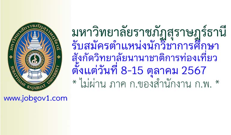 มหาวิทยาลัยราชภัฏสุราษฎร์ธานี รับสมัครนักวิชาการศึกษา สังกัดวิทยาลัยนานาชาติการท่องเที่ยว ตั้งแต่วันที่ 8-15 ตุลาคม 2567