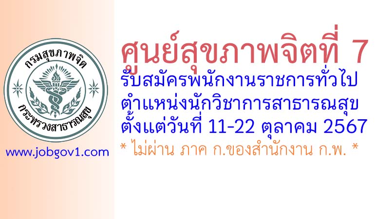 ศูนย์สุขภาพจิตที่ 7 รับสมัครพนักงานราชการทั่วไป ตำแหน่งนักวิชาการสาธารณสุข ตั้งแต่วันที่ 11-22 ตุลาคม 2567