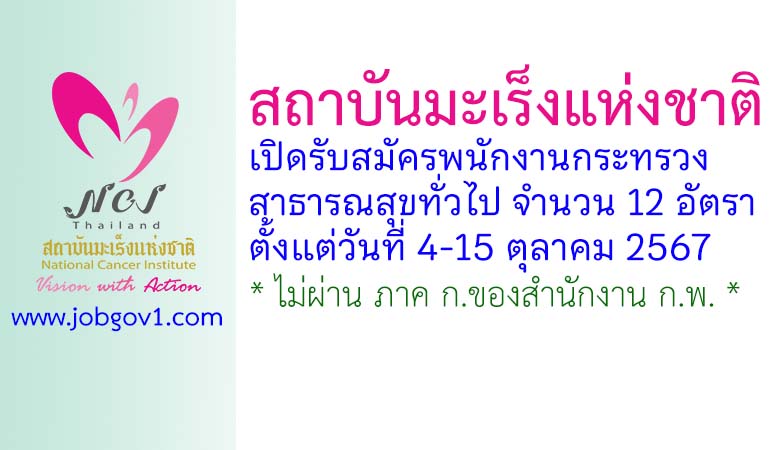 สถาบันมะเร็งแห่งชาติ รับสมัครพนักงานกระทรวงสาธารณสุขทั่วไป 12 อัตรา ตั้งแต่วันที่ 4-15 ตุลาคม 2567
