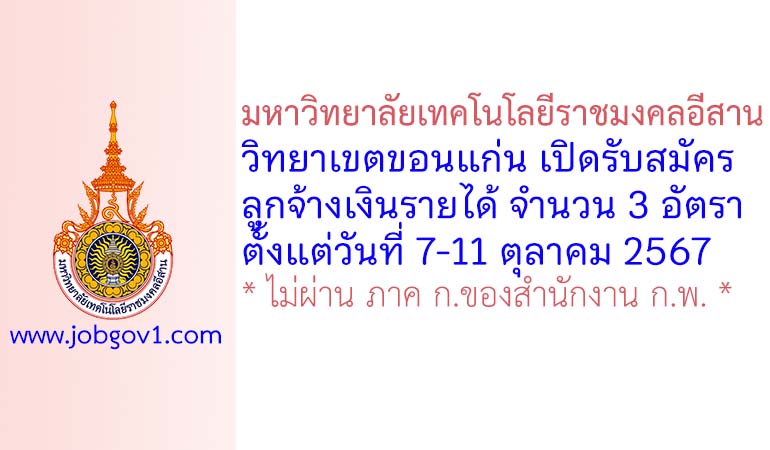 มหาวิทยาลัยเทคโนโลยีราชมงคลอีสาน วิทยาเขตขอนแก่น รับสมัครลูกจ้างเงินรายได้ 3 อัตรา ตั้งแต่วันที่ 7-11 ตุลาคม 2567