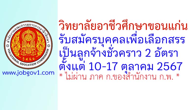 วิทยาลัยอาชีวศึกษาขอนแก่น รับสมัครลูกจ้างชั่วคราว 2 อัตรา ตั้งแต่วันที่ 10-17 ตุลาคม 2567