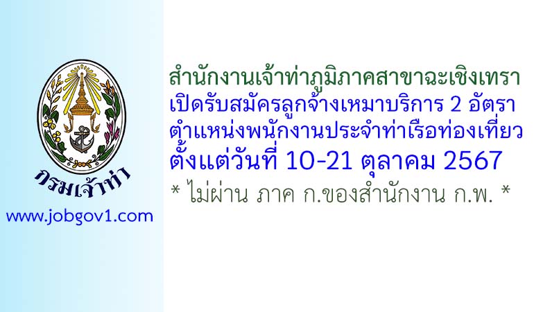 สำนักงานเจ้าท่าภูมิภาคสาขาฉะเชิงเทรา รับสมัครลูกจ้างเหมาบริการ 2 อัตรา ตั้งแต่วันที่ 10-21 ตุลาคม 2567