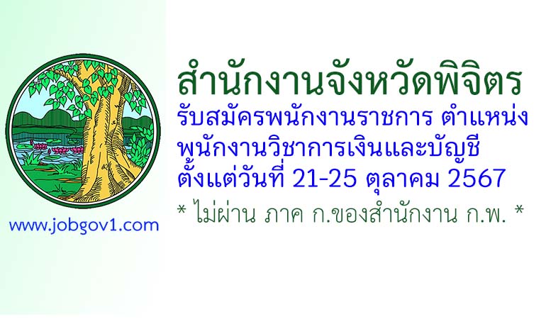 จังหวัดพิจิตร รับสมัครพนักงานราชการทั่วไป ตำแหน่งพนักงานวิชาการเงินและบัญชี ตั้งแต่วันที่ 21-25 ตุลาคม 2567