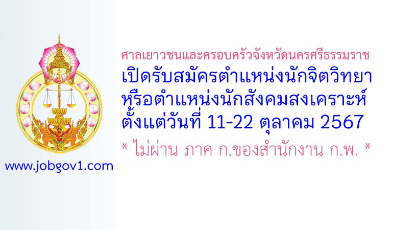 ศาลเยาวชนและครอบครัวจังหวัดนครศรีธรรมราช รับสมัครตำแหน่งนักจิตวิทยาหรือนักสังคมสงเคราะห์ ตั้งแต่วันที่ 11-22 ตุลาคม 2567