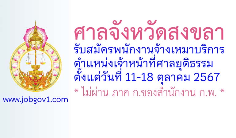 ศาลจังหวัดสงขลา รับสมัครพนักงานจ้างเหมาบริการ ตำแหน่งเจ้าหน้าที่ศาลยุติธรรม ตั้งแต่วันที่ 11-18 ตุลาคม 2567