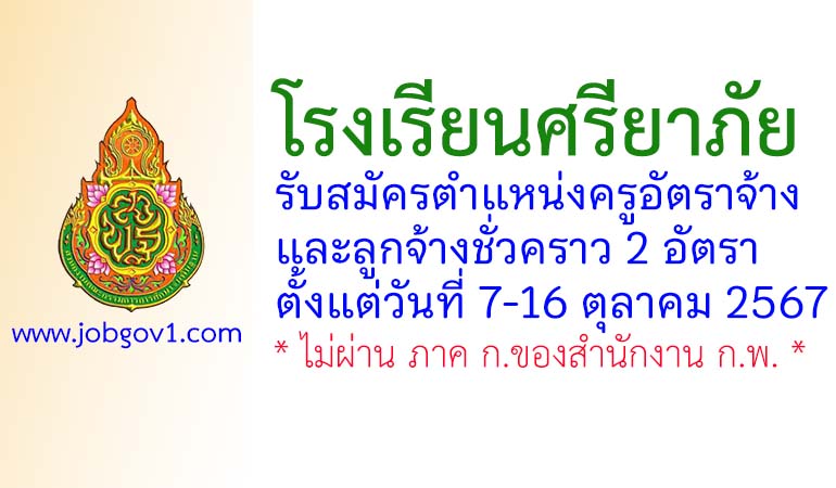 โรงเรียนศรียาภัย รับสมัครครูอัตราจ้าง และลูกจ้างชั่วคราว 2 อัตรา ตั้งแต่วันที่ 7-16 ตุลาคม 2567