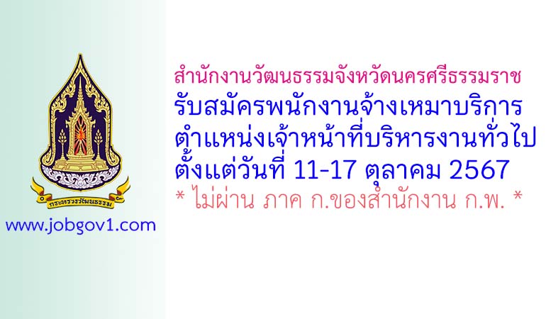 สำนักงานวัฒนธรรมจังหวัดนครศรีธรรมราช รับสมัครจ้างเหมาบริการ ตำแหน่งเจ้าหน้าที่บริหารงานทั่วไป ตั้งแต่วันที่ 11-17 ตุลาคม 2567