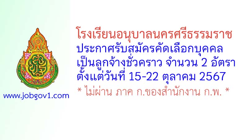 โรงเรียนอนุบาลนครศรีธรรมราช รับสมัครคัดเลือกลูกจ้างชั่วคราว 2 อัตรา ตั้งแต่วันที่ 15-22 ตุลาคม 2567