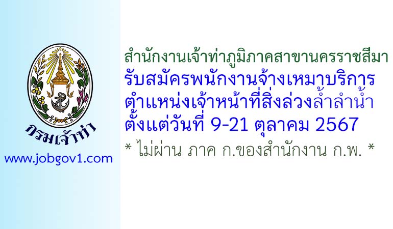 สำนักงานเจ้าท่าภูมิภาคสาขานครราชสีมา รับสมัครพนักงานจ้างเหมาบริการ ตำแหน่งเจ้าหน้าที่สิ่งล่วงล้ำลำน้ำ ตั้งแต่วันที่ 9-21 ตุลาคม 2567