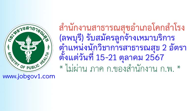 สำนักงานสาธารณสุขอำเภอโคกสำโรง รับสมัครลูกจ้างเหมาบริการ ตำแหน่งนักวิชาการสาธารณสุข 2 อัตรา ตั้งแต่วันที่ 15-21 ตุลาคม 2567