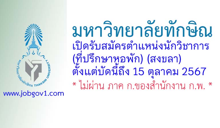มหาวิทยาลัยทักษิณ รับสมัครตำแหน่งนักวิชาการ (ที่ปรึกษาหอพัก) ตั้งแต่บัดนี้ถึง 15 ตุลาคม 2567