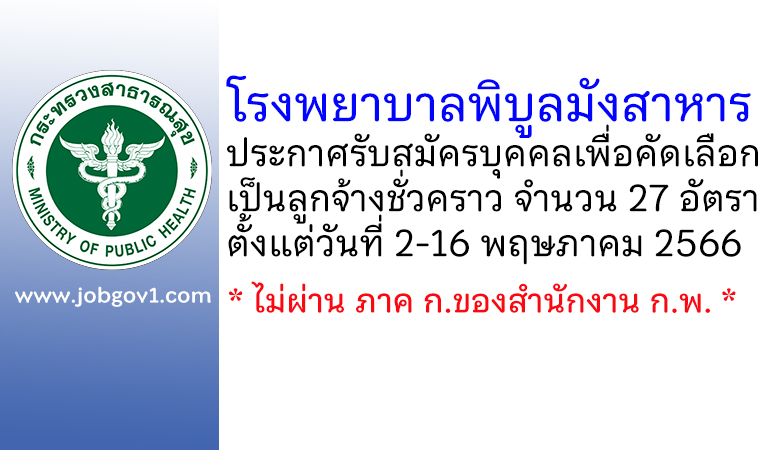 โรงพยาบาลพิบูลมังสาหาร รับสมัครบุคคลเพื่อคัดเลือกเป็นลูกจ้างชั่วคราว 27 อัตรา ตั้งแต่วันที่ 2-16 พฤษภาคม 2566