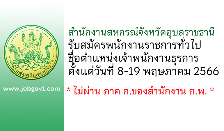 สำนักงานสหกรณ์จังหวัดอุบลราชธานี รับสมัครพนักงานราชการทั่วไป ตำแหน่งเจ้าพนักงานธุรการ ตั้งแต่วันที่ 8-19 พฤษภาคม 2566