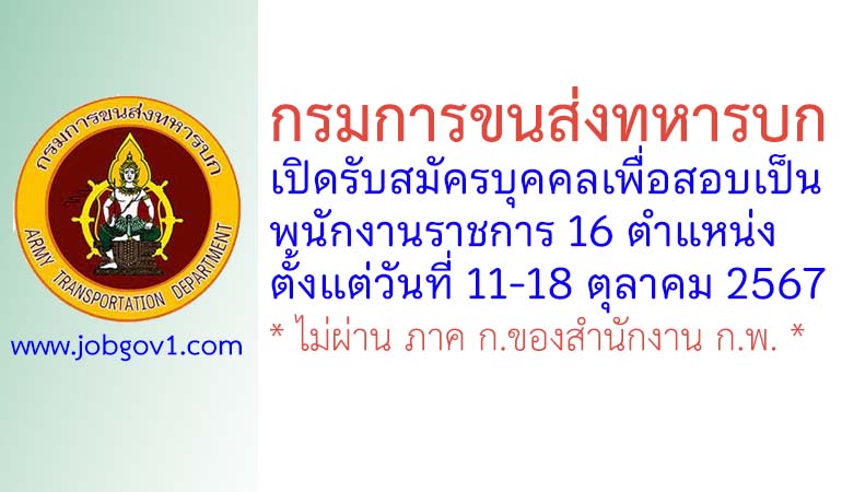 กรมการขนส่งทหารบก รับสมัครบุคคลเพื่อสอบเป็นพนักงานราชการ 16 ตำแหน่ง ตั้งแต่วันที่ 11-18 ตุลาคม 2567