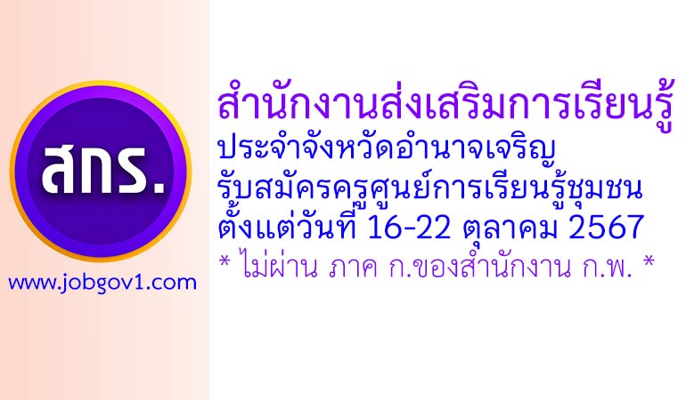 สำนักงานส่งเสริมการเรียนรู้ประจำจังหวัดอำนาจเจริญ รับสมัครครูศูนย์การเรียนรู้ชุมชน ตั้งแต่วันที่ 16-22 ตุลาคม 2567