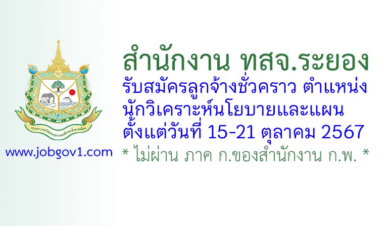สำนักงาน ทสจ.ระยอง รับสมัครลูกจ้างชั่วคราว ตำแหน่งนักวิเคราะห์นโยบายและแผน ตั้งแต่วันที่ 15-21 ตุลาคม 2567