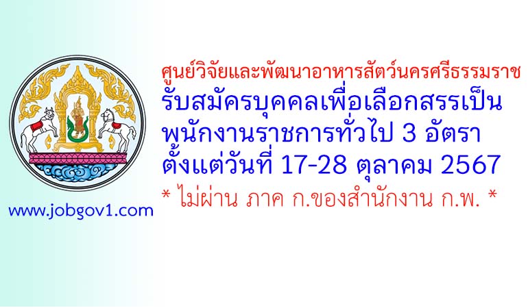 ศูนย์วิจัยและพัฒนาอาหารสัตว์นครศรีธรรมราช รับสมัครบุคคลเพื่อเลือกสรรเป็นพนักงานราชการทั่วไป 3 อัตรา ตั้งแต่วันที่ 17-28 ตุลาคม 2567