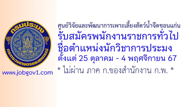 ศูนย์วิจัยและพัฒนาการเพาะเลี้ยงสัตว์น้ำจืดขอนแก่น รับสมัครพนักงานราชการทั่วไป ตำแหน่งนักวิชาการประมง ตั้งแต่ 25 ตุลาคม – 4 พฤศจิกายน 2567