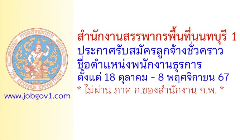 สำนักงานสรรพากรพื้นที่นนทบุรี 1 รับสมัครลูกจ้างชั่วคราว ตำแหน่งพนักงานธุรการ ตั้งแต่ 18 ตุลาคม – 8 พฤศจิกายน 2567