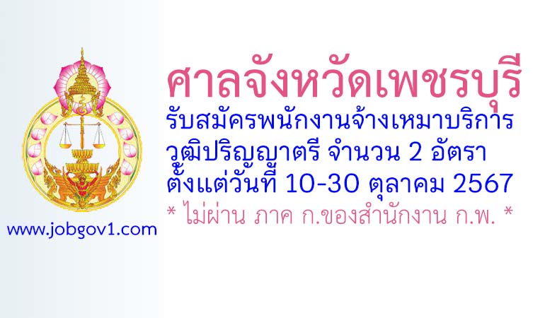ศาลจังหวัดเพชรบุรี รับสมัครพนักงานจ้างเหมาบริการ 2 อัตรา ตั้งแต่วันที่ 10-30 ตุลาคม 2567