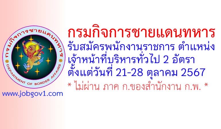กรมกิจการชายแดนทหาร รับสมัครพนักงานราชการ ตำแหน่งเจ้าหน้าที่บริหารทั่วไป 2 อัตรา ตั้งแต่วันที่ 21-28 ตุลาคม 2567