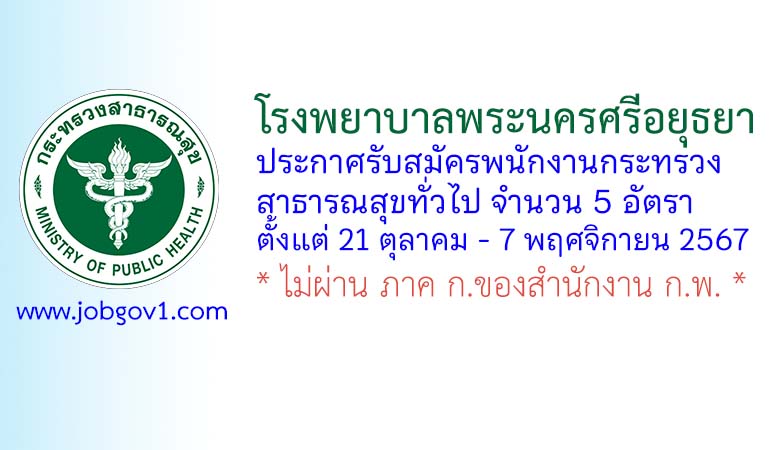 โรงพยาบาลพระนครศรีอยุธยา รับสมัครพนักงานกระทรวงสาธารณสุขทั่วไป 5 อัตรา ตั้งแต่ 21 ตุลาคม – 7 พฤศจิกายน 2567