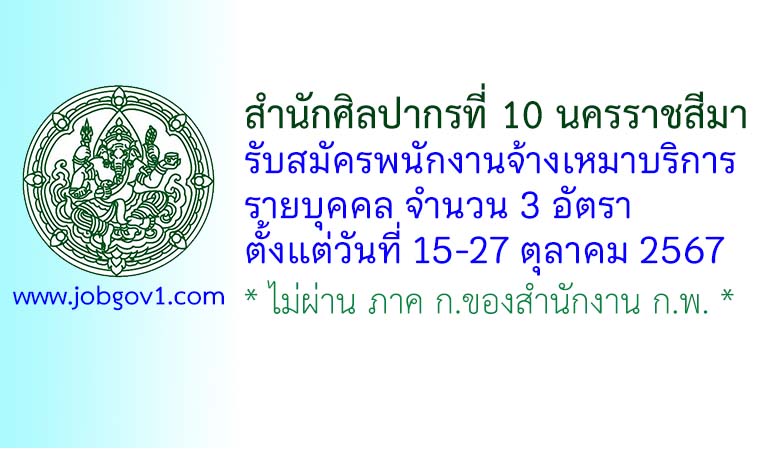 สำนักศิลปากรที่ 10 นครราชสีมา รับสมัครพนักงานจ้างเหมาบริการ 3 อัตรา ตั้งแต่วันที่ 15-27 ตุลาคม 2567