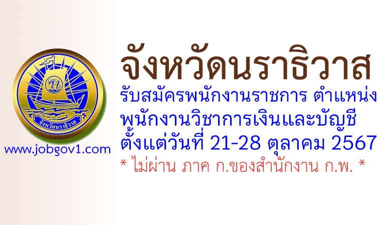 จังหวัดนราธิวาส รับสมัครพนักงานราชการทั่วไป ตำแหน่งพนักงานวิชาการเงินและบัญชี ตั้งแต่วันที่ 21-28 ตุลาคม 2567