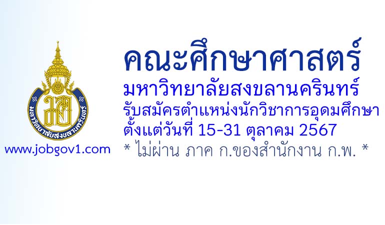คณะศึกษาศาสตร์ มหาวิทยาลัยสงขลานครินทร์ รับสมัครตำแหน่งนักวิชาการอุดมศึกษา ตั้งแต่วันที่ 15-31 ตุลาคม 2567