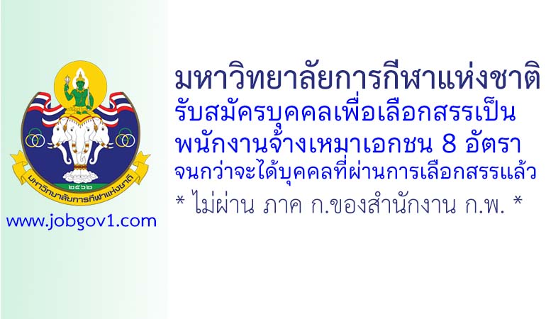 มหาวิทยาลัยการกีฬาแห่งชาติ รับสมัครบุคคลเพื่อเลือกสรรเป็นพนักงานจ้างเหมาเอกชน 8 อัตรา จนกว่าจะได้บุคคลที่ผ่านการเลือกสรรแล้ว