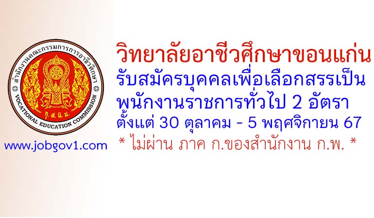 วิทยาลัยอาชีวศึกษาขอนแก่น รับสมัครบุคคลเพื่อเลือกสรรเป็นพนักงานราชการทั่วไป 2 อัตรา ตั้งแต่ 30 ตุลาคม – 5 พฤศจิกายน 2567