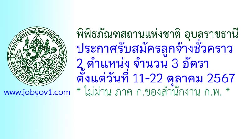 พิพิธภัณฑสถานแห่งชาติ อุบลราชธานี รับสมัครลูกจ้างชั่วคราว 3 อัตรา ตั้งแต่วันที่ 11-22 ตุลาคม 2567