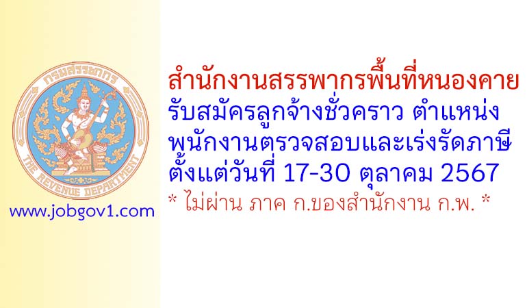 สำนักงานสรรพากรพื้นที่หนองคาย รับสมัครลูกจ้างชั่วคราว ตำแหน่งพนักงานตรวจสอบและเร่งรัดภาษี ตั้งแต่วันที่ 17-30 ตุลาคม 2567